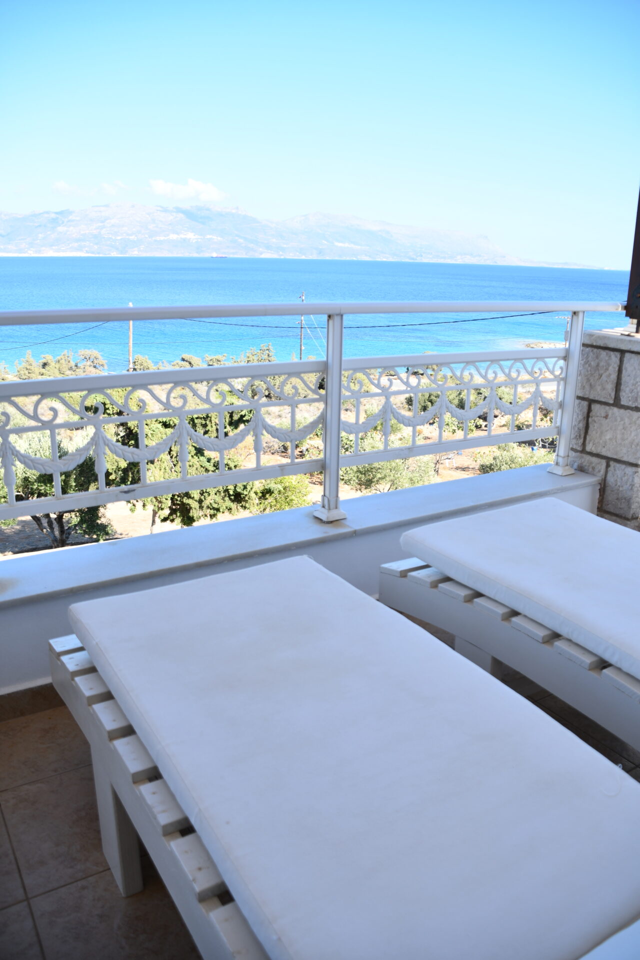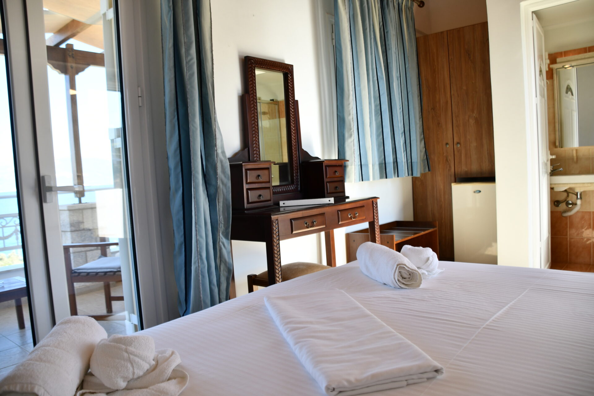 Τα δίκλινα δωμάτια διαθέτουν πολύ μεγάλα μπαλκόνια και υπέροχη θέα στη θάλασσα.
