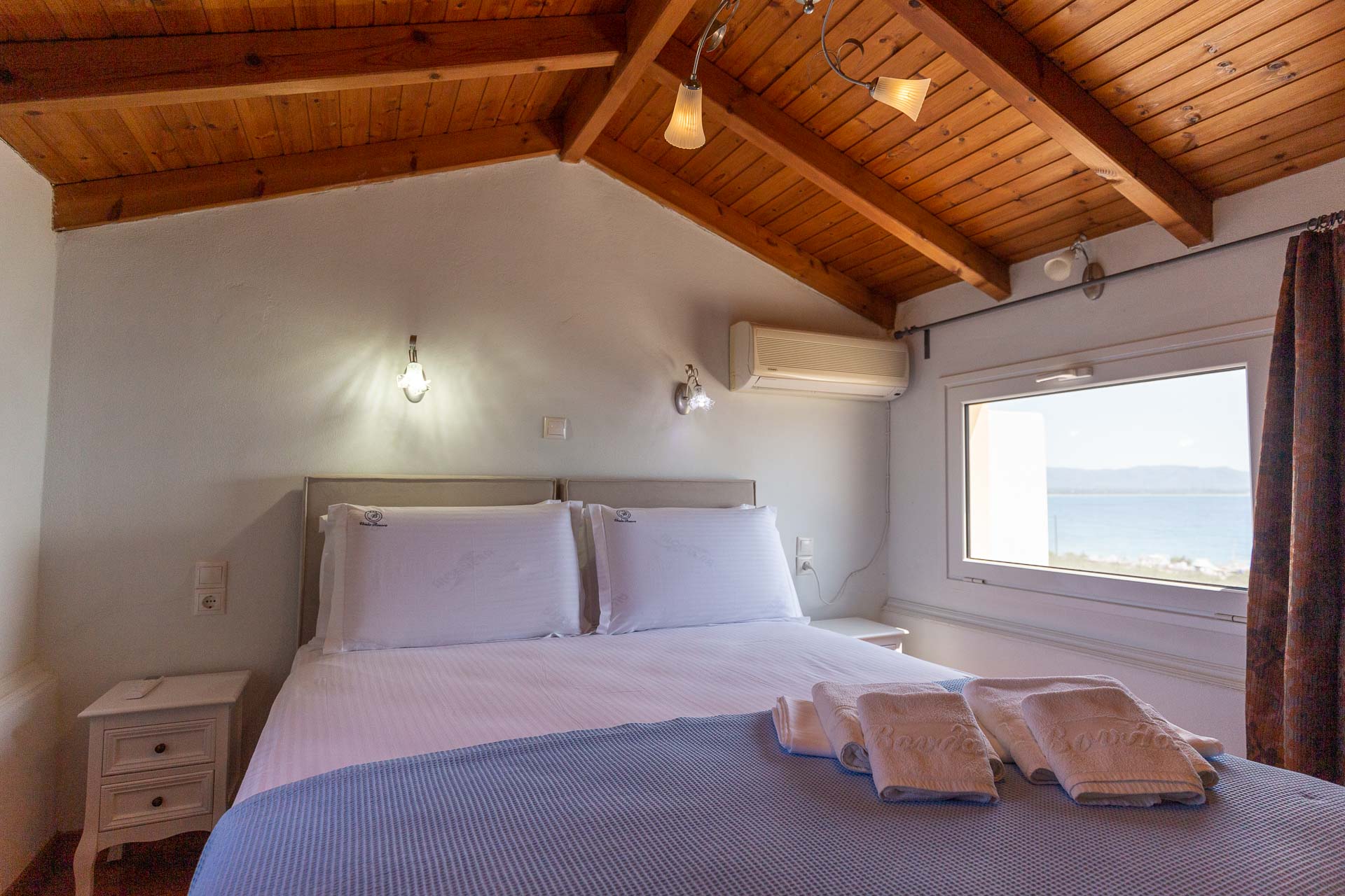 Ανεβαίνοντας την εσωτερική ξύλινη σκάλα θα βρεθείτε στο υπνοδωμάτιο με διπλό κρεβάτι και ξύλινη οροφή.