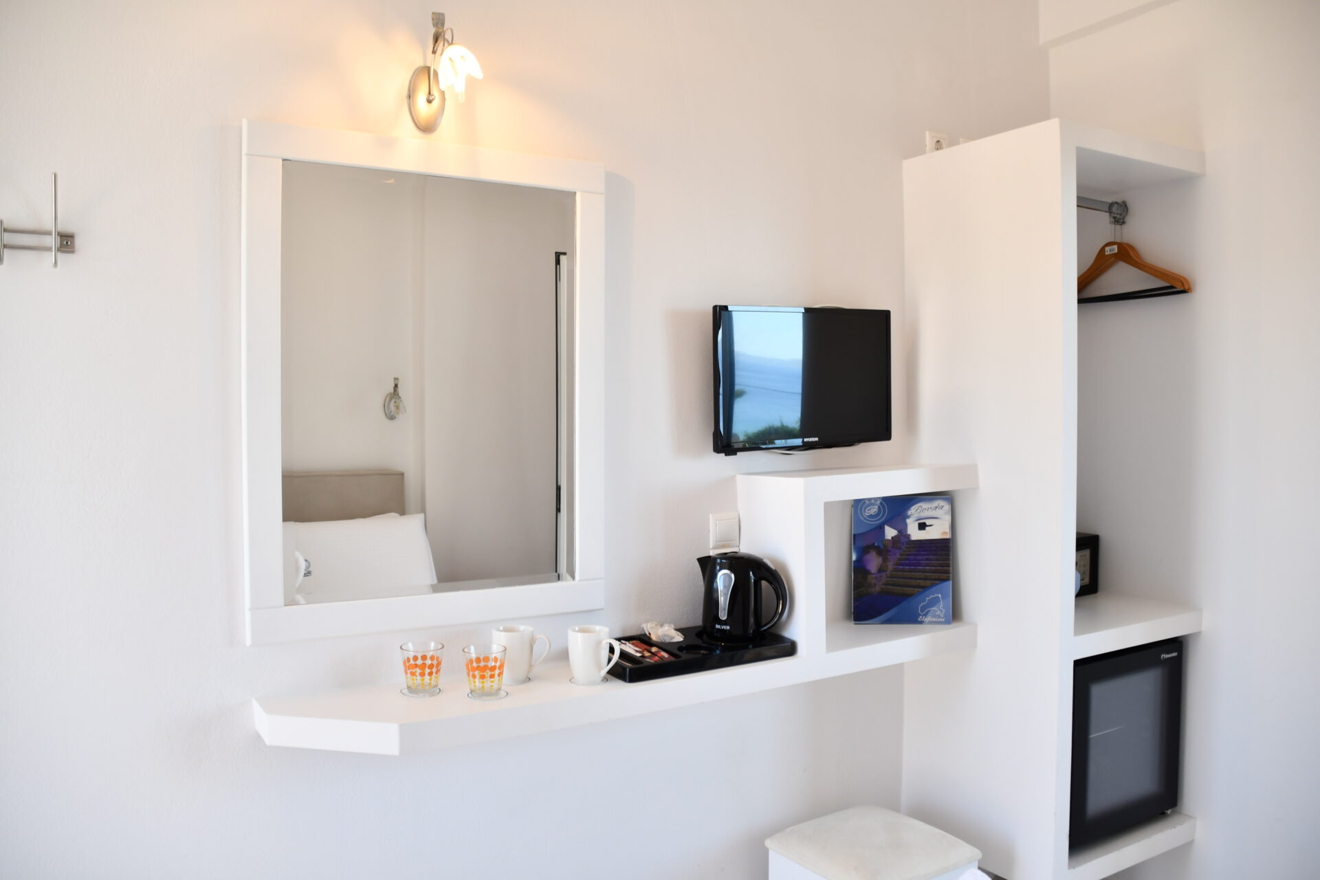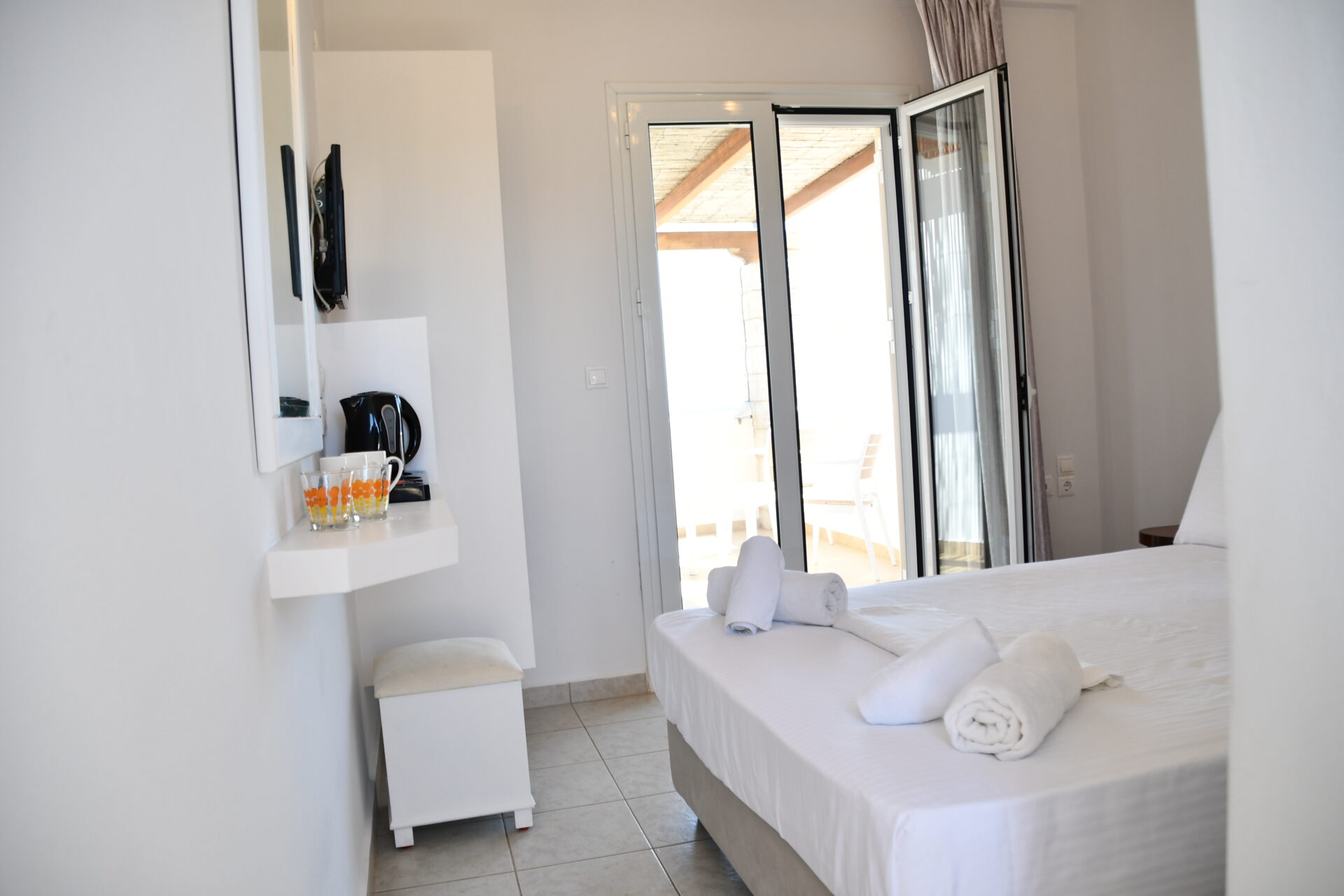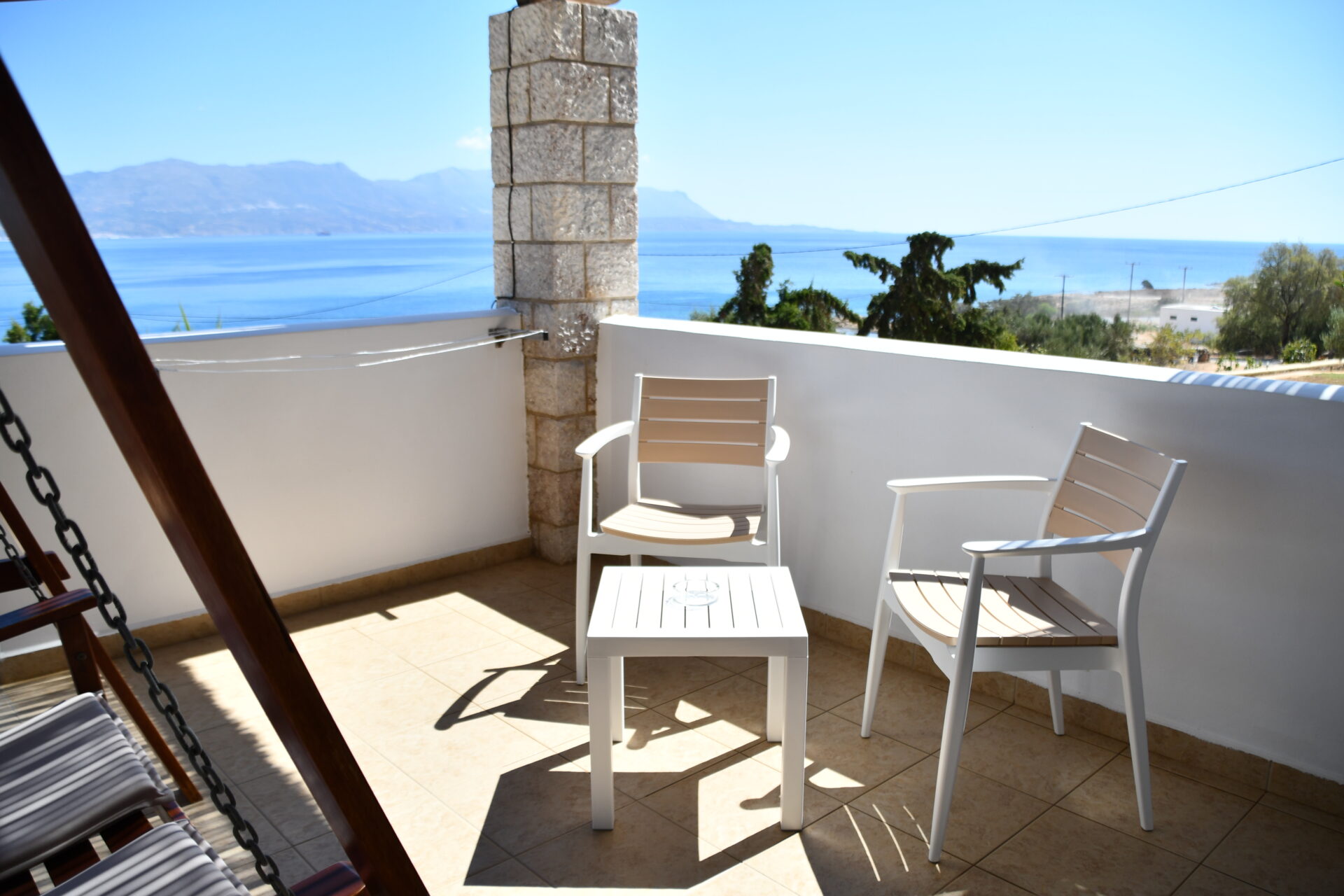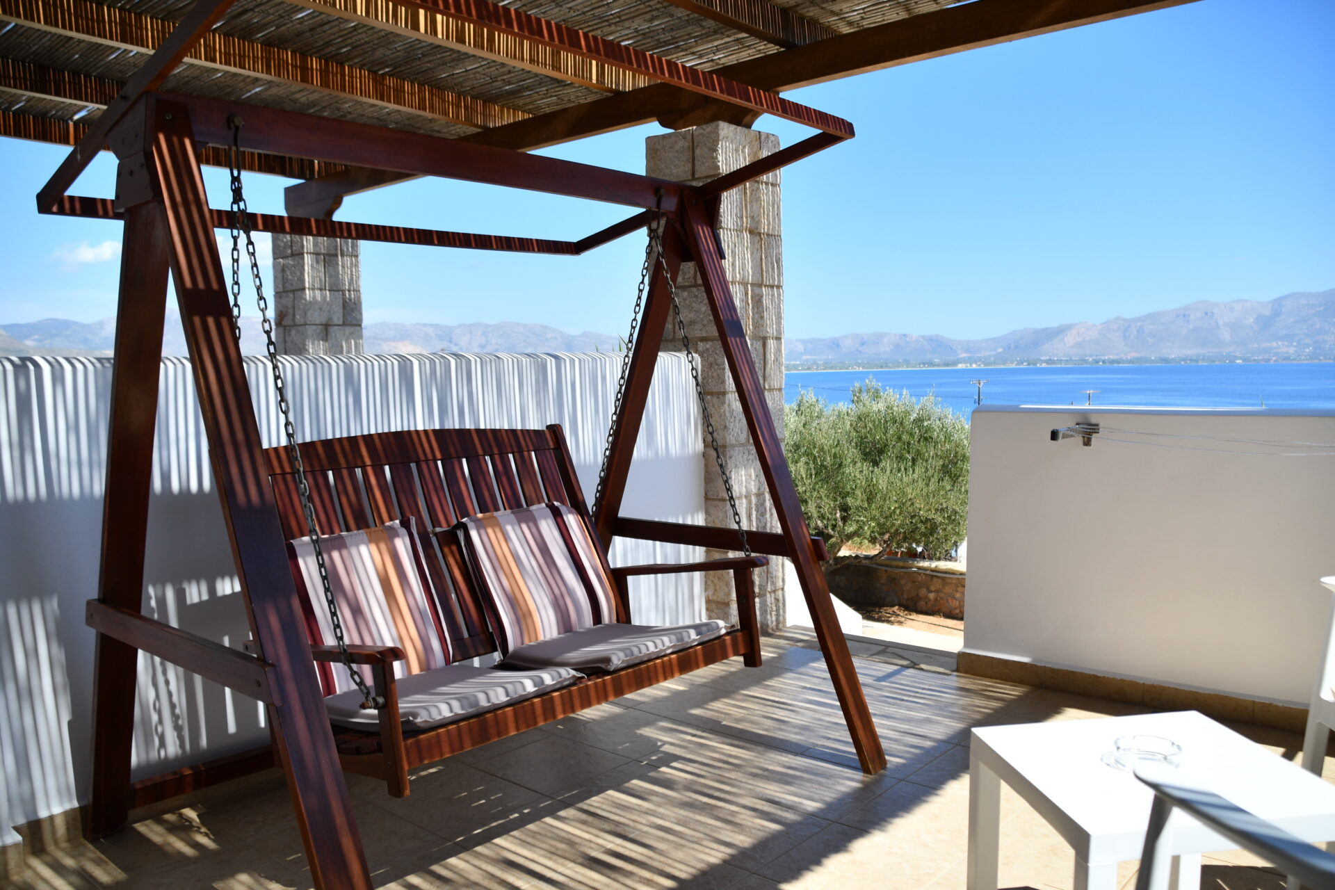 Το δωμάτιο διαθέτει μεγάλο μπαλκόνι με κούνια και υπέροχη θέα στη θάλασσα.